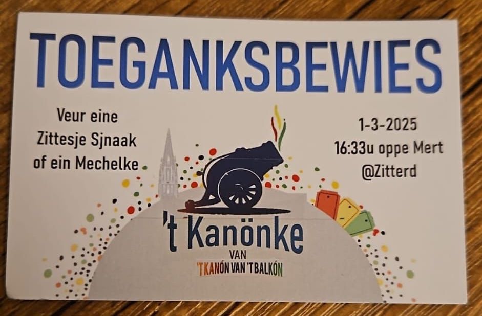 Sittard, 26 februari – Stadscarnavalsvereniging De Marotte Zitterd waarschuwt carnavalsvierders voor de verspreiding van neptoegangskaarten voor ’t Kanon van ’t Balkon op zaterdag 1 maart 2025 op de Markt in Sittard. Alleen officiële toegangsbewijzen zijn geldig.